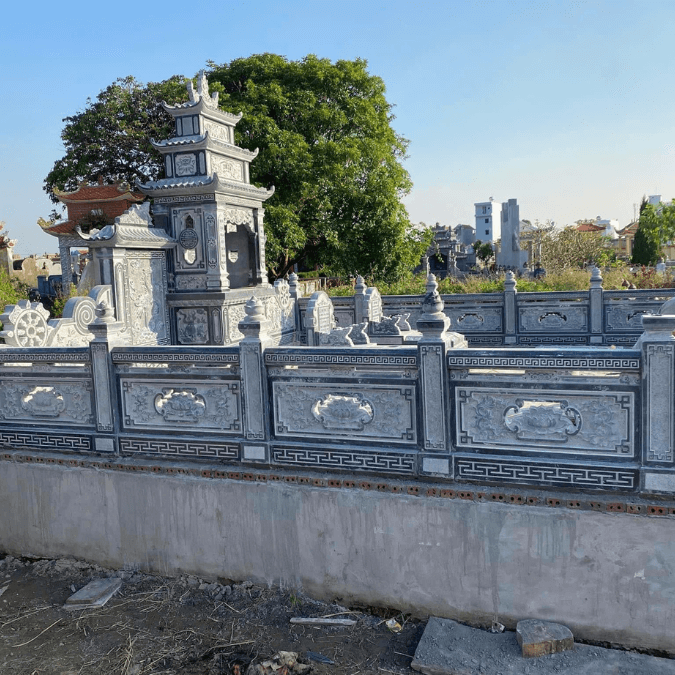 Lan can đá là hạng mục kiến trúc được làm hoàn toàn từ đá tự nhiên (thường là đá xanh, đá trắng, đá granite…), dùng để bao quanh, bảo vệ hoặc phân tách không gian. Lan can đá thường được lắp đặt tại các công trình tâm linh (như đình, chùa, khu lăng mộ), nhà thờ họ, khuôn viên nhà ở, cầu thang, sân vườn…